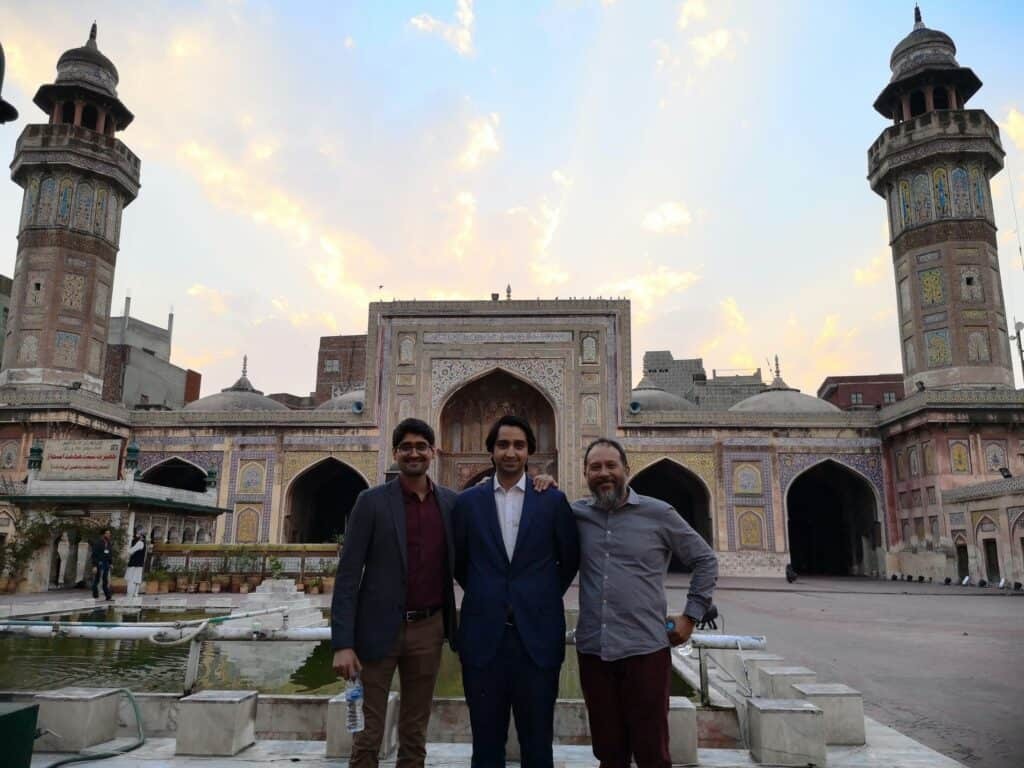 From left: Gobi vice president Taraec Hussein, investor Ali Mukhtar (now general partner of Fatima Gobi Ventures), and JB at Lahore’s iconic Badshahi Mosque in early 2019.