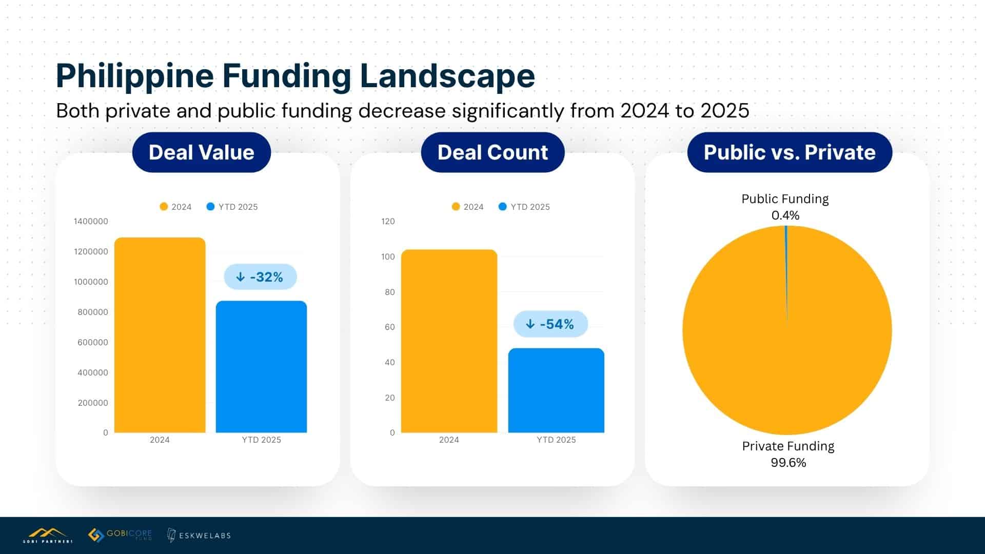 The ecosystem has entered another phase of recalibration. In 2025, total startup funding fell 32%, while deal volume declined 54% year-on-year, continuing the cautious investment trend seen since 2023.